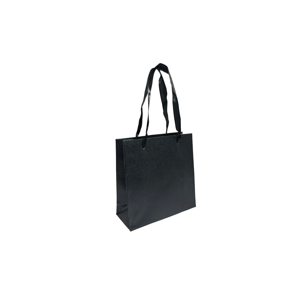 Sacola preta elegante e versátil, perfeita para boutiques, cafés e eventos. Fabricada em papel kraft resistente, oferece uma excelente apresentação e durabilidade.